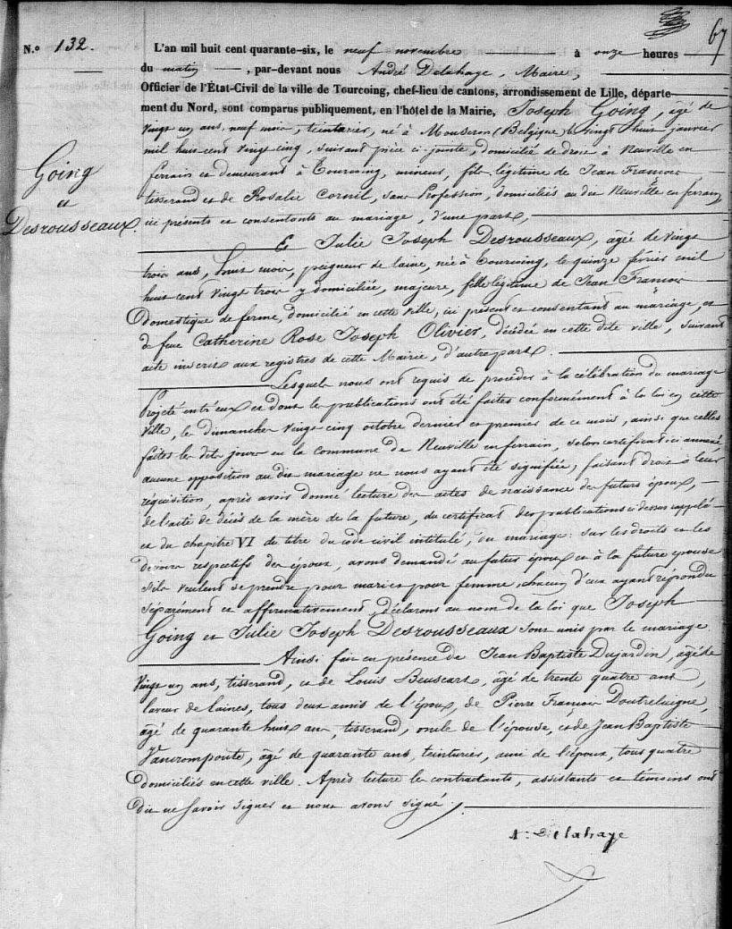 Acte de mariage de GOING et DESROUSSEAUX
