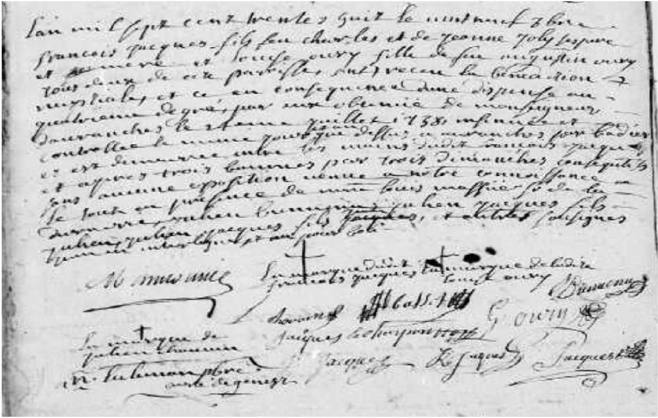 En conséquence d'une dispense au quatrième degré , par eux obtenue de Monseigneur d'Avranches le 24 eme juillet 1738.