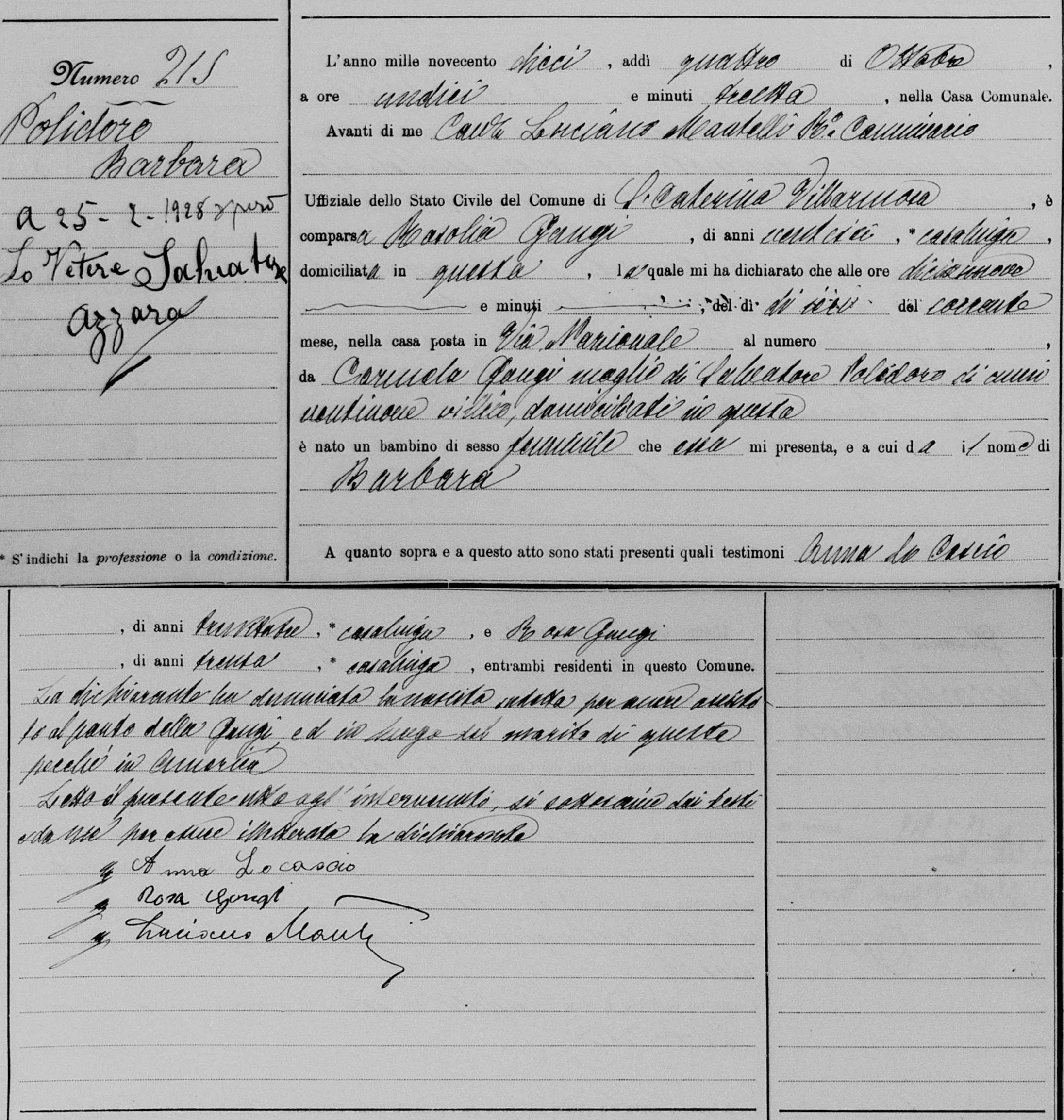 Père : POLIDORO Salvadore ( (c) 1882 - ? )